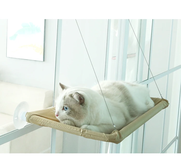 Install Cat Hammock to windows or sliding glass doors, please press 4 suction cups hard on the smooth and cleaned glass. You can put weight on the hammock to test its tolerance before your kitty jumps into the seating perch.